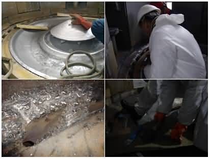 雙組分,以陶瓷顆粒及復合陶瓷顆粒、金屬碳化物為骨材與PDMG預聚體為基礎的耐磨復合材料,具有耐水、耐油、耐酸堿性。適用(-60℃-80℃)設備過流沖蝕、設備的大面積修復、設備預涂耐磨層,如旋流器、浮選柱、浮選機、泡沫槽、分級機、攪拌桶、溜槽、管件類、泵類等修復